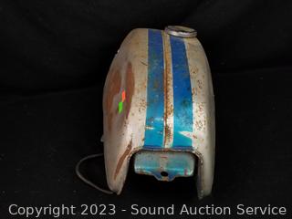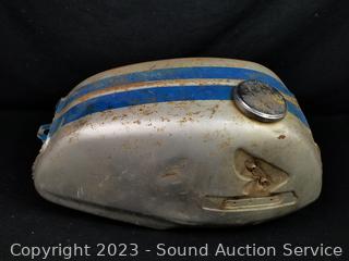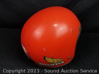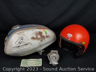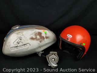 Lot #0158: vtg. Honda Fuel Tank w/Cap & Ampro Helmet