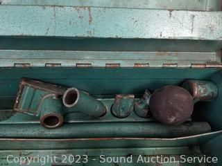 309 Lots including Antique Wood Banded Chest, Rustic Lawn & Garden Decor, Patio Table & chair Sets, Vtg. Crosscut Saws, Vintage/Antique Rustic Tools, Antique Ford Jacks, Model "T" Rims/Tires, Ladies Clothing, Uranium? Glass Biscuit Jar, Concrete Mixer, Gold & Silver Jewelry, Sewing Machine, Wicker Furniture/Decor, Assorted Household Goods, Kitchen Cookware, Camping & Outdoor & Much More!!!