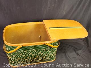 12.5" H x 20.5" x 13". Metal handle has some scuffs, don't see any other major issues.