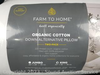 Lot #0184: 2pk Farm to Home Organic Cotton Down Alternative King Pillows