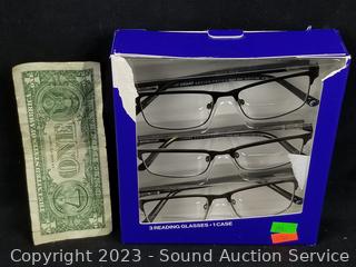 Lot #0295: 3ct Foster Grant Full Frame Metal +2.5 Reading Glasses w/1 Case