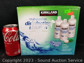 Lot #0190: 3pk Kirkland 16oz Multi-Purpose Disinfecting Solution w/Lens Case