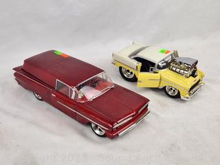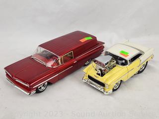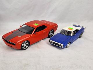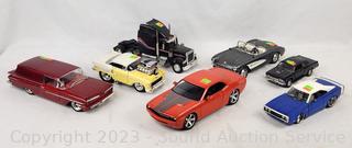 Road Tough 1957 Chevy Corvette, Maisto 2006 Dodge Challenger Concept, Weller Peterbilt 379, Strombecker 1966 Chevy Malibu, 2004 Funline 1957 Chevy Belaire, Jada 1970 Dodge Charger, 2003 Mattel Hot Wheels 59 Chevy.