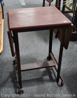 Lot #0004: Cherry Finish Drop Leaf Rolling Table