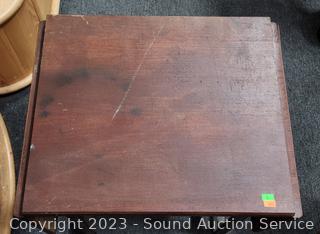 Some wear to the finish. 27" x 18" x 16" with (2) 9" drop leaves.