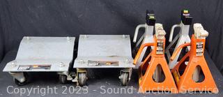 Lot #0021: 4 Vehicle 2-Ton Jack Stands & 2 Vehicle Wheel Dollies