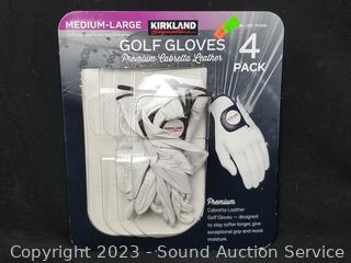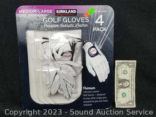 Lot #0271: 4pk Kirkland Premium Cabretta Leather Golf Gloves S:M/L