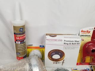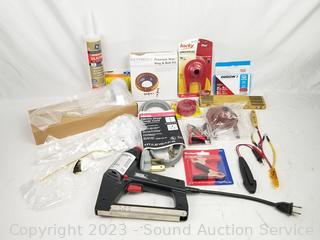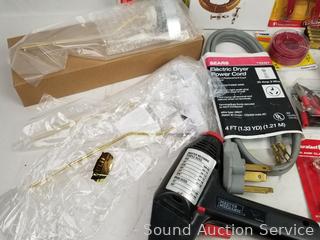 Toilet wax ring & bolt kit, elec. staple gun & staples, dryer power cord, electrical wiring, folding rule & more Refer to photos for more info.