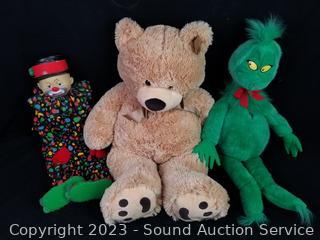 Grinch, Teddy Bears, Animals, Clown, etc. Refer to photos for more info.