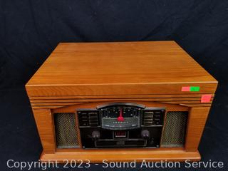 CD, Phono, Tape, Radio, all appear to be functioning as intended. Small repaired chop on top right corner. 9.5" H x 17.5" W x 12.25" D.