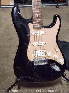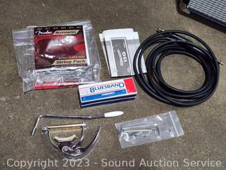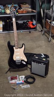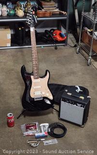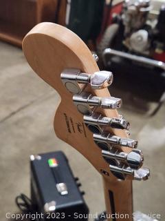 Lot #0038: Fender Starcaster Elec. Guitar w/Amp, Stand, Cable, Capo