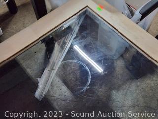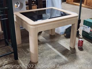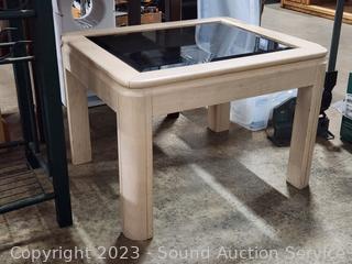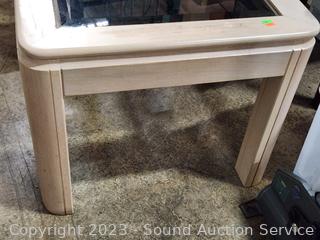 Lot #0058: Ivory Finish Glass Top Oak Side Table