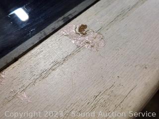 19" H x 27" x 23". Beveled glass. Some scuffs, wear to finish.