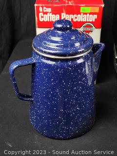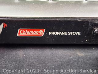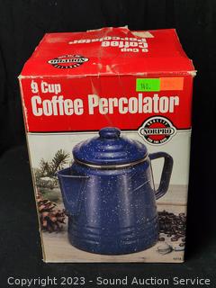 Lot #0140: Lantern, Coleman Propane Camp Stove & 9-Cup Coffee Percolator