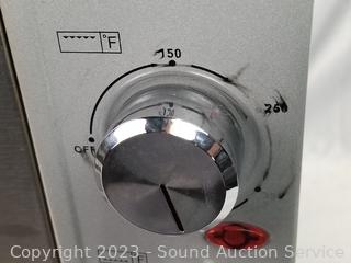 Has power, appears to be functioning as intended. Signs of wear from use. 14.25" H x 22" W x 16" D.