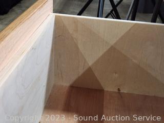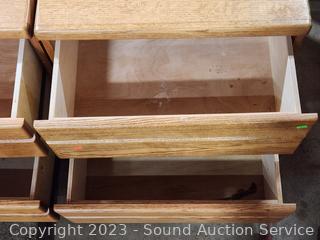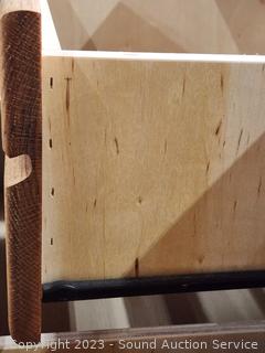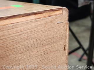 Roller drawer guides, plywood construction, oak finish veneer finish. Overall great condition. 21" H x 23" W x 16.75" D.