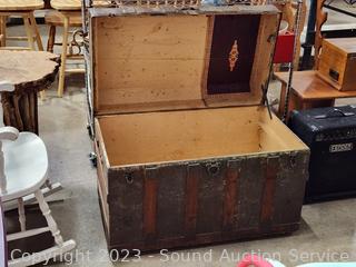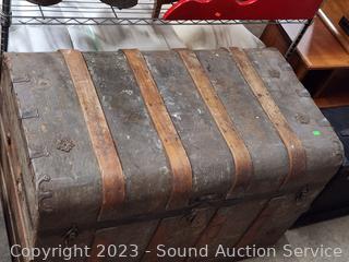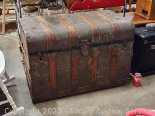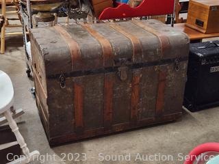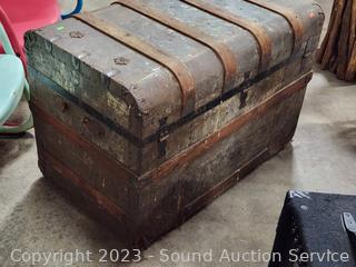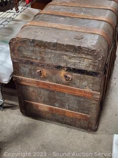 Lot #0052: Vtg/Antique Wood Banded Chest/Trunk