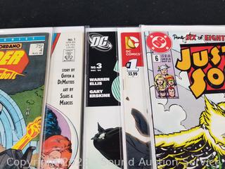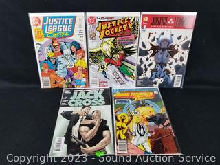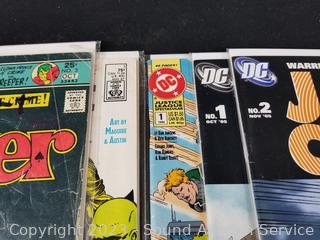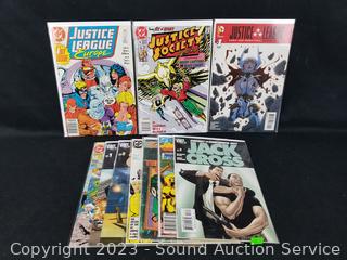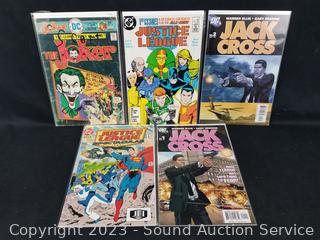 Several are 1st issues, Justice League Europe #1, Justice League Spectacular #1, Justice League #1, Justice Society #6, Jack Cross #1/#2/#3, Johnni Thunder #4, The Joker #3. Refer to photos for titles, genre, condition, etc. All are in protective sleeves.