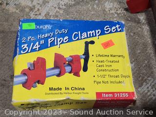 Lot #0066: (2) 1" 4ft Pipe Clamps & (2) 3/4" Pipe Clamp Sets