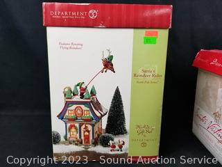 Santas Visiting Center (building & light only, no accessories) & Santa's Reindeer Rides (complete, light works). Both in original packaging.