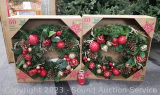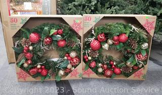 Lot #0205: 2 Pre-Lit LED Artificial 30" Wreaths