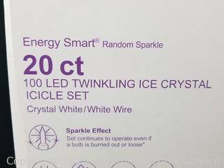 Lot #0203: 2 Strands 20ct 100 LED Twinkling Icicles - Work