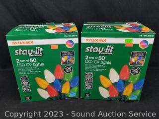 Lot #0062p: 4 Sets Sylvania 50 LED Multi-Color C9 String Lights
