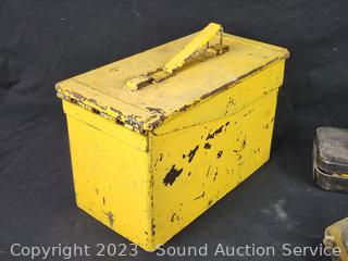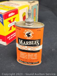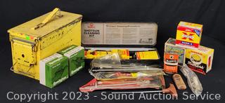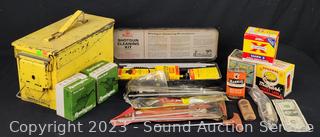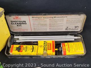 Lot #0114: (50 25ct Shotgun Shells, Gun Cleaning Kits & Ammo Tin