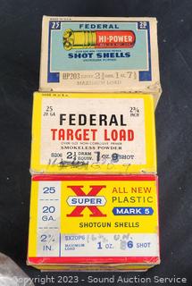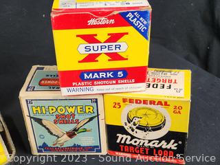 (5) 25ct 2-3/4" 20GA Shotgun shells, Dove/Quail target loads, etc. Refer to photos for more info.