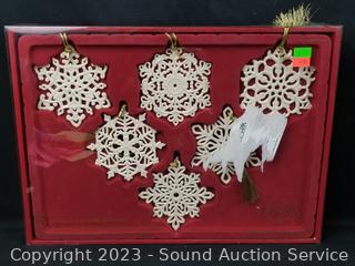 Lot #0181p: 6 Lenox Porcelain Snowflake Ornaments