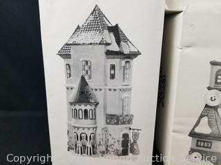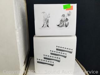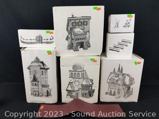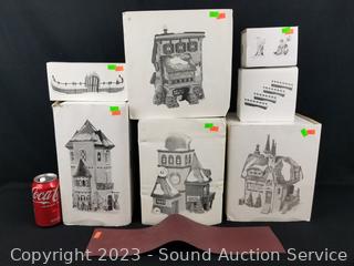 Part of the Heritage Collection North Pole Series. Comes with "Churchyard Fence Extensions", "Churchyard Gate & Fence", "Candy Cane Elves", "Santa Light Shop", "Elves Trade School", "Weather & Time Observatory", "Tin Soldier Shop". All in original packaging.