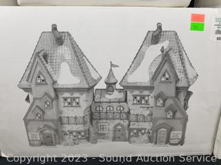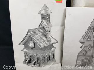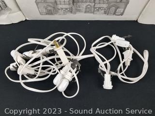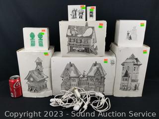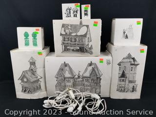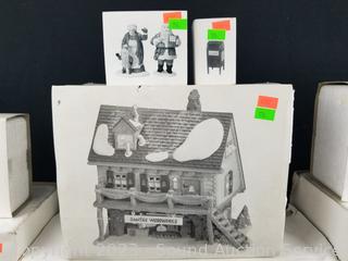 Part of the Heritage Collection North Pole Series. Comes with 6 socket & 2 socket village light cords, "Stone Corner Posts w/Holly Tree", "Mailbox", "Santa & Mrs. Claus", "A Busy Elf", "Tin Soldiers Shop", "North Pole Chapel", "North Pole Dolls & Santas Bear Works", "Santa's Woodworks". All in original packaging.