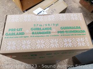 Lot #0204: 9ft Pre-Lit LED Artificial Garland - Works