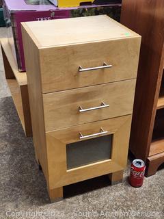Lot #0267: Maple Veneer? 3-Drawer Nightstand/Side Table