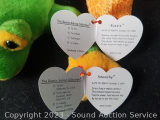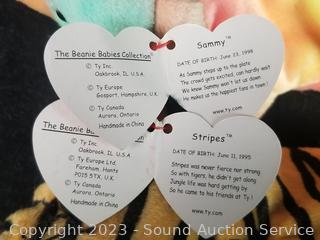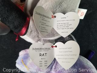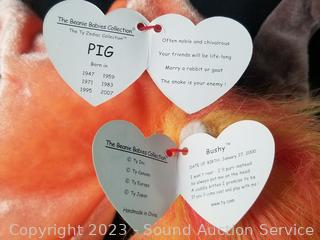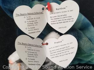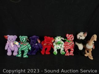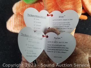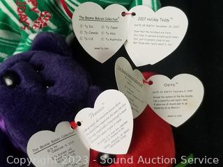 Love to Mom 2007, Pig 2000, Bushy 2000, Glow 2000, Smoochie 1997, Stripes 1995, Stretch 1997, Peanut 1995, Peacan 1999, Loosy 1998, Rat 2000, King Me 1993, (2) Holiday Teddy 2007, Clover 2001, Rainbow 1997, Buzzie 2001, Osito 1999, Righty 2000 & 2007, Sammy 1999, Prance 1997, Princess 1997, Stinger 1998. Many with original tags.