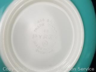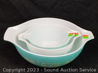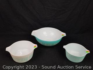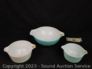 Lot #0106: 3 Pyrex Turquoise Amish Butter Print Bowls
