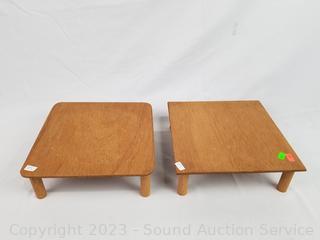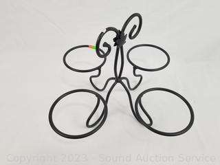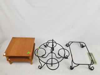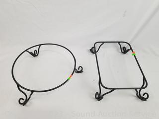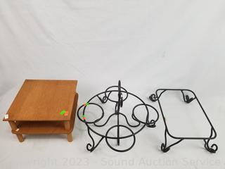 Lot #0109: 3 Wrought Iron Potholders, 2 Wood Risers