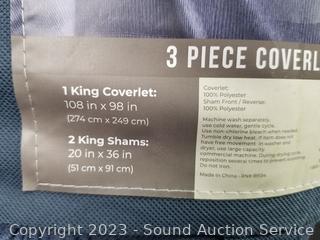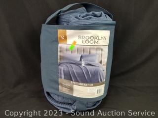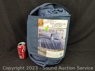 Lot #0275: 3pc Brooklyn Loom Blue King Coverlet Set
