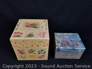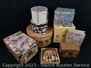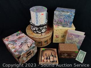 Lot #0130: 7 Decorative Boxes, Index Cards & Notebook