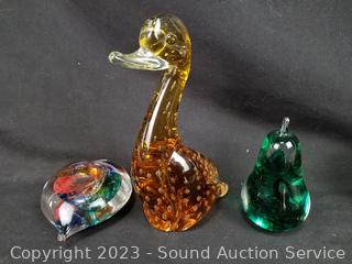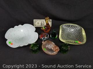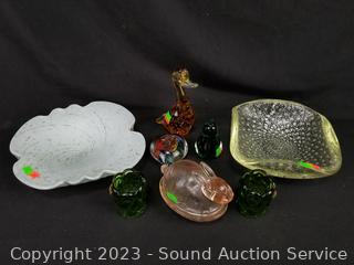 Lot #0177: Assorted Art Glass Figures, Dishes, Rabbit Nesting Dish