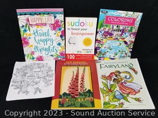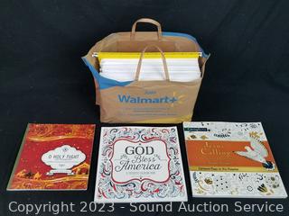 Coloring pages, books, Art Supplies, 2 reams or printer paper, various loose blank paper.