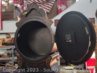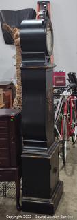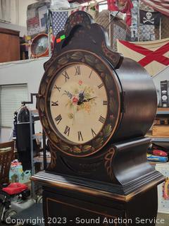 Quartz movement, storage space in top middle & bottom sections. 80" H x 18" W x 12" D. Some minor scuffs. overall great condition.