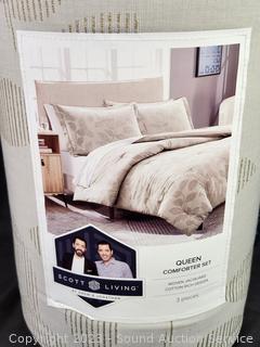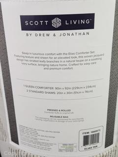 Lot #0266: Scott Living Elias Tan Queen 3pc Comforter Set