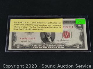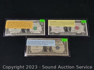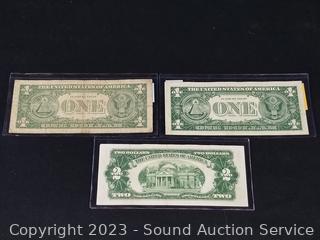 Lot #0132: 1953A $2 Red Seal, 1957A Blue Seal Silver Cert, 1963B Scarce Barr Note