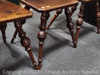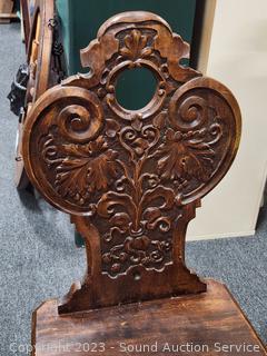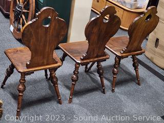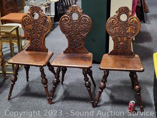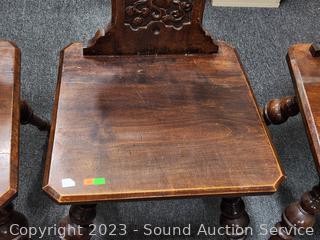 Lot #0001: 3 Antique German Carved Back Walnut? Turned Leg Chairs