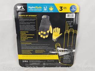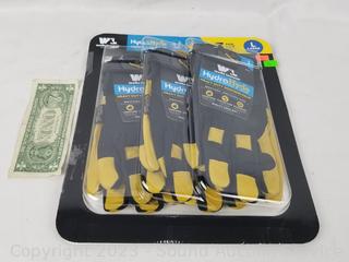 Lot #0318: 3 Pairs Wells Lamont Hydra Hyde Leather Work Gloves S:L