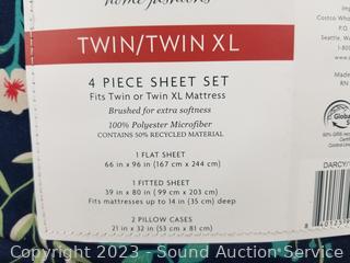Lot #0317: 4pc South Point Twin/TwinXL Darcy Print Polyester Sheet Set