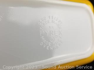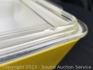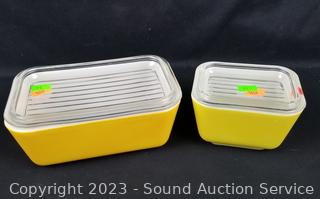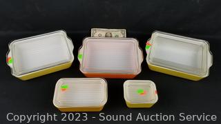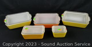 Lot #0091: 5 Pyrex Glass Yellow/Orange Food Storage Containers w/Lids
