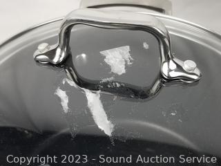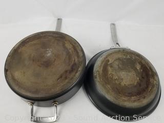 Signs of wear from use. 2qt, 3qt, 4qt saucepans, 8qt boiling pot, 12" skillet & fry pan.