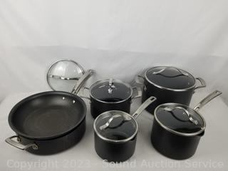 Lot #0274: 6pc Kirkland Hard-Anodized Pots/Pans w/5 Lids